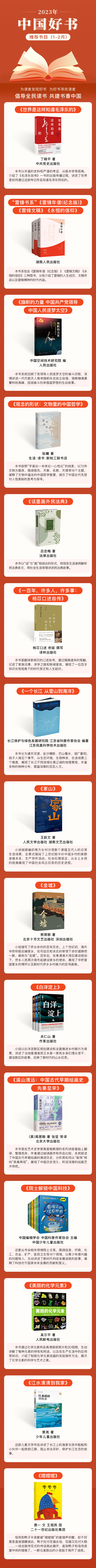 在中宣部出版局指导下,经中国图书评论学会组织评选,2023年“中国好书”推荐书目(1—2月)发布: