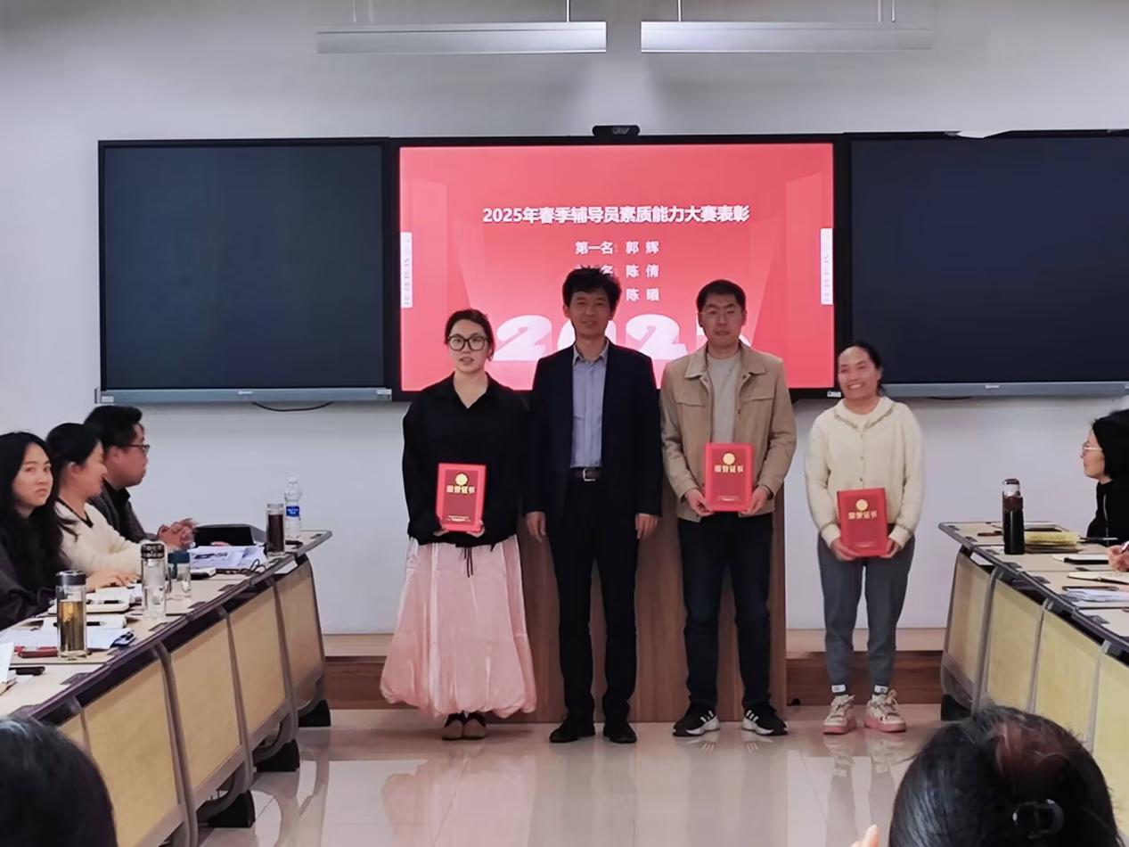 会上,集体观看了2025年辅导员素质能力大赛培训视频集锦,耿帮才为2025年辅导员素质能力大赛培训获得前三名的辅导员颁奖 。