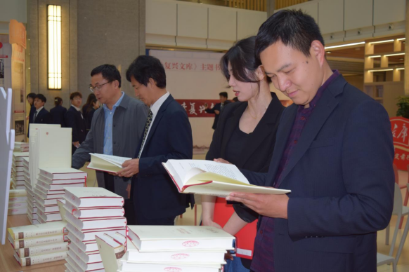 (党群工作部 邓琳子)4月11日下午,学校在图书馆一楼大厅举行《复兴文库》书展暨4月读书活动启动仪式,学校党委书记叶永涛、副董事长赵乔、副校长耿帮才及相关职能部门负责人、二级学院党总支书记出席活动。启动仪式由副校长耿帮才主持。