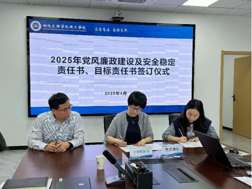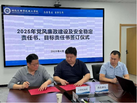 (学校办公室 汤济旖)4月15日下午,学校在图书馆722会议室举办2025年党风廉政建设及安全稳定责任书、目标责任书签订仪式。学校领导班子成员及各教学单位、各职能部门党政负责人参会。