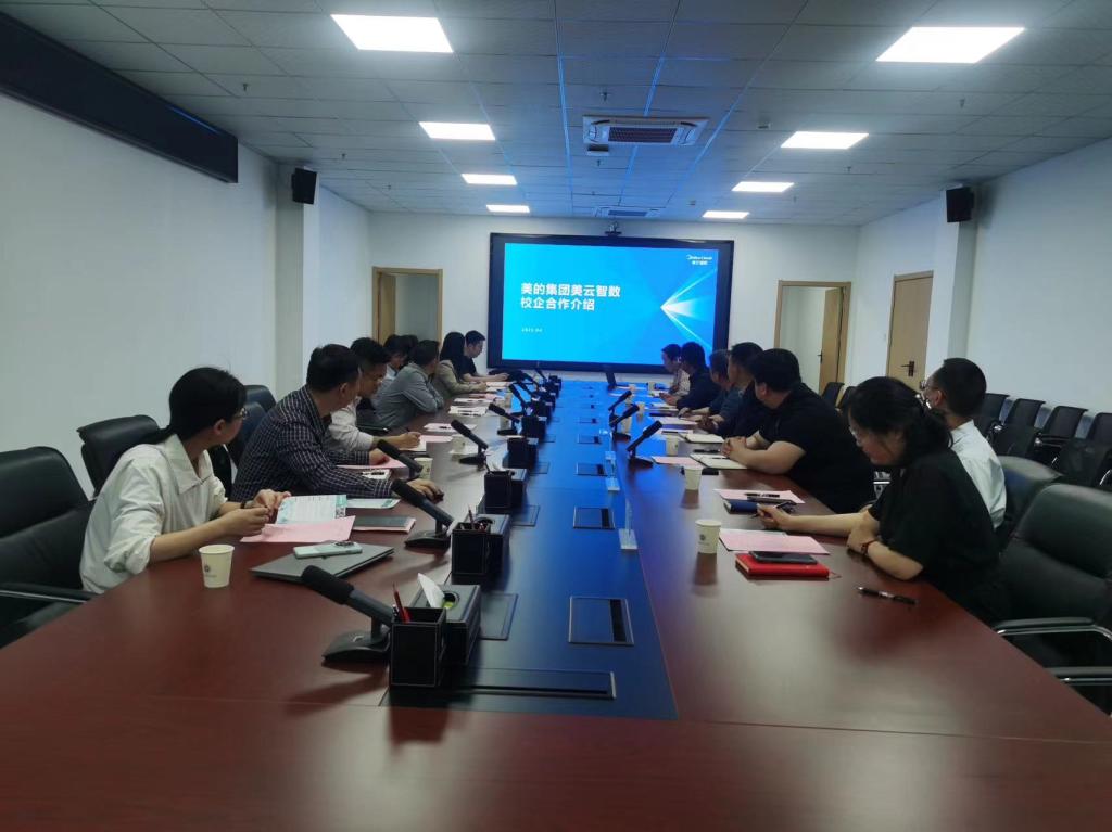 美的集团美云智数院校生态总经理江宝仁介绍了美的集团和美云智数公司的基本情况、美的智数校企合作方式,以及院校合作案例。他期待与我校共建实践基地,推动产学研一体化发展。