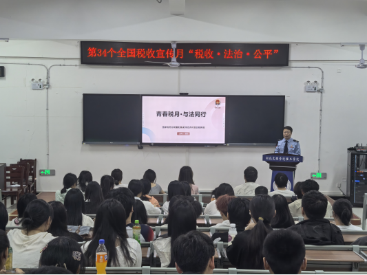 (财务管理部 陈梦颖)为普及税收知识,提升青年学生的税法意识,4月29日,国家税务总局襄阳鱼梁洲经济开发区税务局到我校开展“青春‘税’月 与法同行”主题宣讲活动。通过知识讲座、互动问答等形式,为我校学生带来了一场生动的税收知识盛宴。