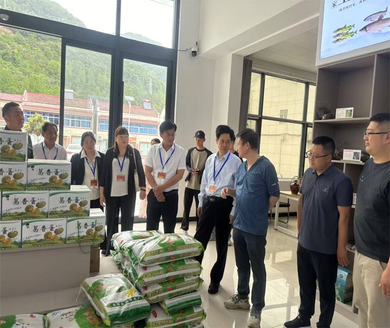 汪波一行受到了鱼泉河村村委会的热烈接待。在党支部书记高善玉等村领导的陪同下,汪波和师生们参观了电商产业园的运营中心、仓储物流区和农产品展示区,详细了解了产业园的发展现状、运营模式以及面临的挑战。鱼泉河村电商产业园自建成以来,已成为当地农产品销售的重要平台,通过线上渠道将本地的特色农产品,如葛香蛋、羊肚菌、葛根粉等推向全国市场。