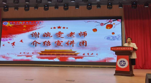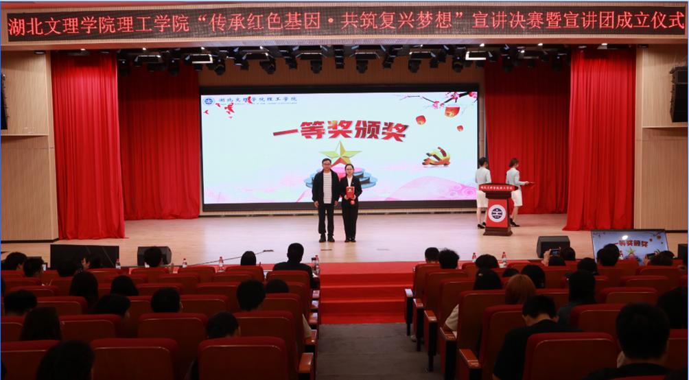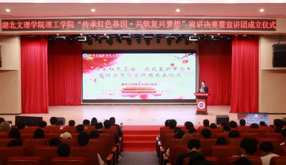 (通讯员 辛怡辉 翟良栋 谢婉雯)5月8日,我校“传承红色基因,共筑复兴梦想”宣讲决赛暨宣讲团成立仪式在大学生活动中心三楼报告厅举行。学校党委书记叶永涛、副校长耿帮才、学工部部长兼团委书记宋功成、马克思主义学院院长刘慧、学工部副部长兼团委副书记黄洁、青年马克思主义知行协会指导老师谢婉雯担任评委,各二级学院党总支书记和400余名师生代表参与活动。