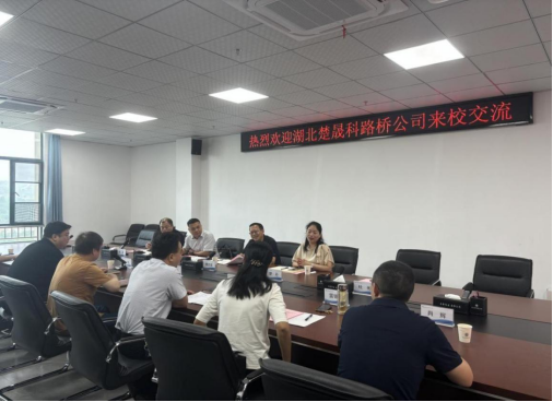 (建工学院 徐雅妮)为了深化校企合作,推动产教融合,提高人才培养质量和服务区域经济社会发展的能力,实现我校的外延与内涵同步发展。5月21日上午,建筑工程学院邀请湖北楚晟科路桥技术开发有限公司在图书馆722会议室开展校企合作交流会。湖北楚晟科路桥公司总经理曹亦斌、人资部部长廖丹、检测事业部部长董锐、李凯,我校副校长汪波、周伟,招生就业部部长胡阳、建工学院院长刘琦良、原城市规划设计院院长雷锦洪及相关专业教师参加会议。