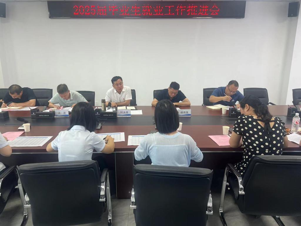 (通讯员 冯睿)为动员全校力量打好6-8月就业攻坚战,6月5日下午,学校在图书馆722会议室召开2025届毕业生就业工作推进会。党委书记叶永涛、校长杨海浪、副校长汪波、各二级学院党政负责人和招生就业部相关工作人员参会。汪波主持会议。