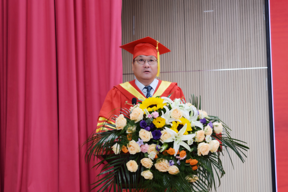 最后,校长杨海浪发表了激情洋溢的讲话。他代表学校向毕业生顺利完成学业表示热烈的祝贺,向一路陪伴同学们成长付出辛勤劳动的老师和家人们表示衷心的感谢。