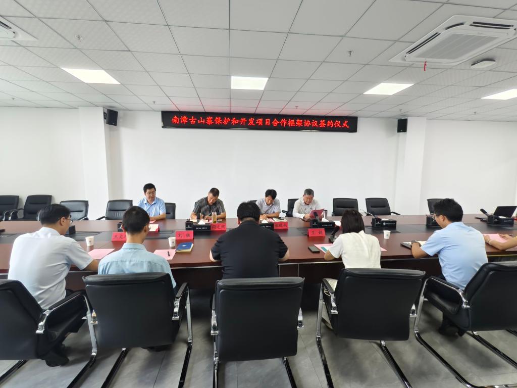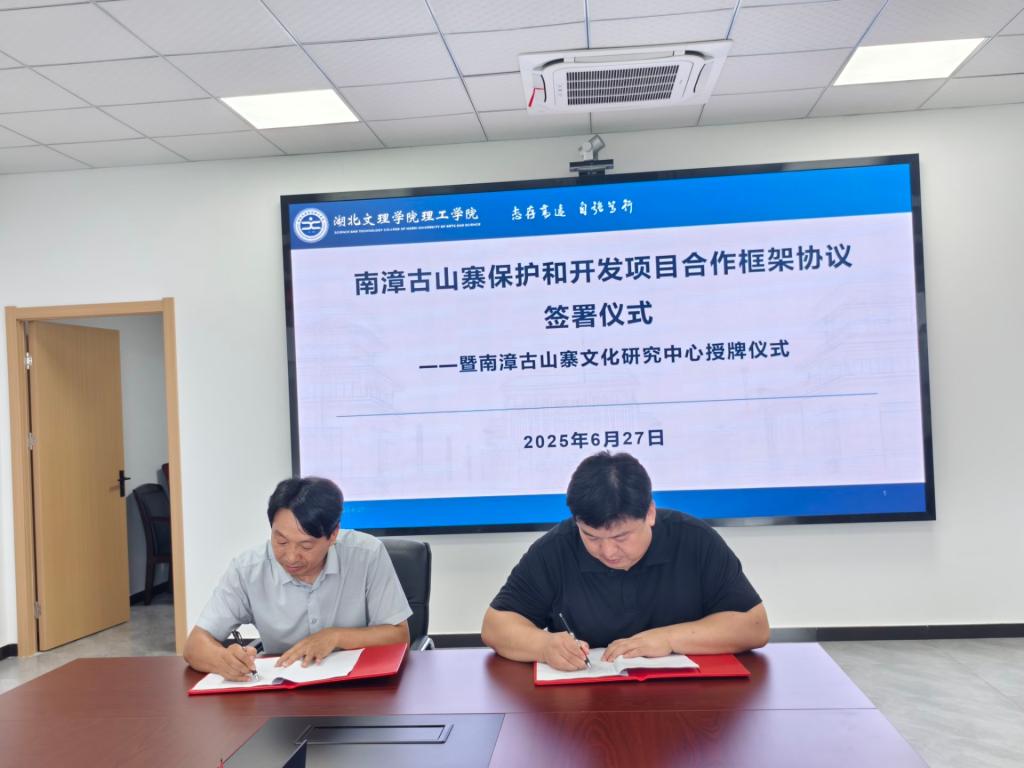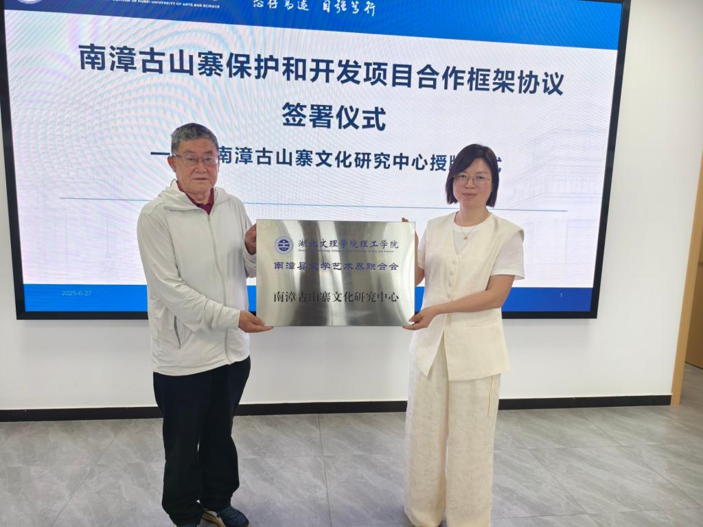 最后,双方代表签署合作框架协议,并举行“南漳古山寨文化研究中心”授牌仪式。