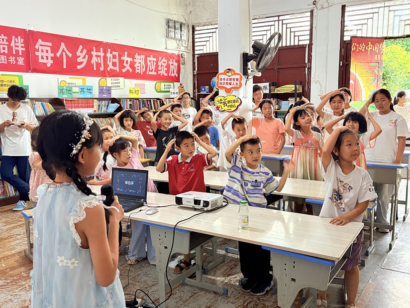 骆小青表示,教育学院始终秉持“服务社会、奉献爱心”的宗旨,进一步深化校地合作,为乡村振兴贡献教育力量。分团委书记陈倩介绍了本次托管班的课程安排,涵盖红色主题、乐理课堂、趣味英语、健康成长等内容。随后,志愿者们开展了“击鼓传花”“做相反”等破冰趣味游戏,使彼此迅速熟悉,现场笑声不断,不仅消除了彼此的陌生感,更培养了孩子们的团队协作能力和反应能力。
