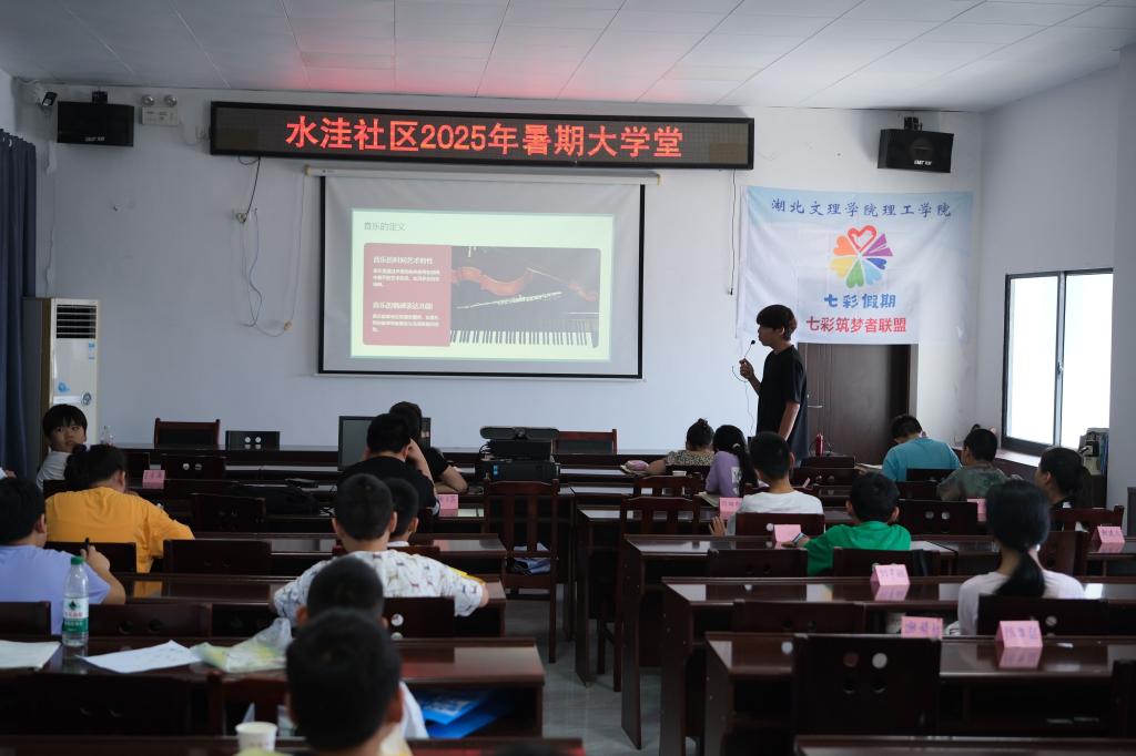 (通讯员 万小月 丁胜坤)7月2日上午,在水洼社区暑期大学堂内,我校电信学院“七彩筑梦者联盟”的志愿者们正专注地为孩子们辅导功课。襄阳市人大常委会党组成员、副主任、市总工会主席吉虹来到课堂时,恰逢志愿者解答完学生的数学疑问。