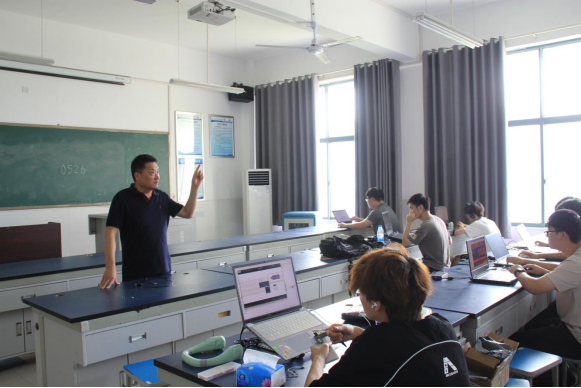 校领导一行首先来到教学楼,为备战学科竞赛的师生们送去关怀与慰问。据介绍,我校今年暑期共有100余名师生在校备战中国国际大学生创新大赛、金相技能大赛、中国机器人及人工智能大赛、全国大学生电子设计竞赛等十余项省级以上的学科竞赛。