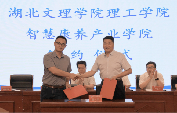 签约仪式上,在全场嘉宾和教职工的见证下,校长杨海浪分别与襄阳市国防科技工业协会秘书长张丽、上海联代健康科技有限公司总裁叶春涛签订了产业学院共建协议,宣告了理工学院国防科技工业产业学院和智慧康养产业学院的成立。