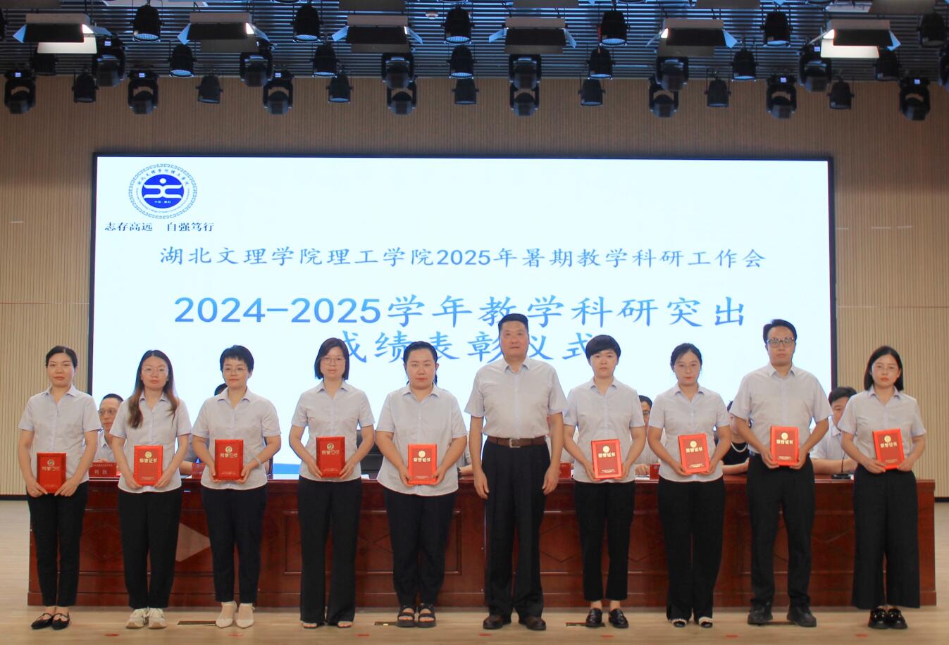 随后,大会对2024-2025学年教学质量工程建设、科研成果、学科竞赛三类教学科研工作中取得突出成绩的教师进行了表彰。