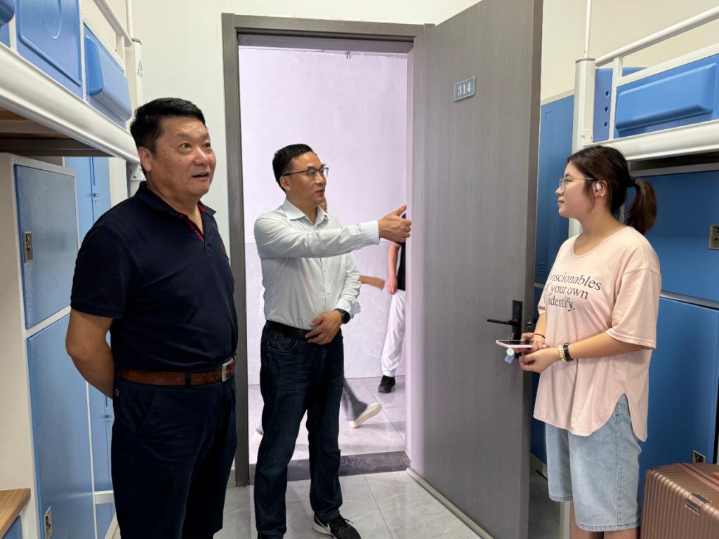 校领导及相关部门负责人深入迎新现场、学生宿舍、食堂等区域,细致视察迎新工作调度情况,现场检查指导各环节衔接细节。