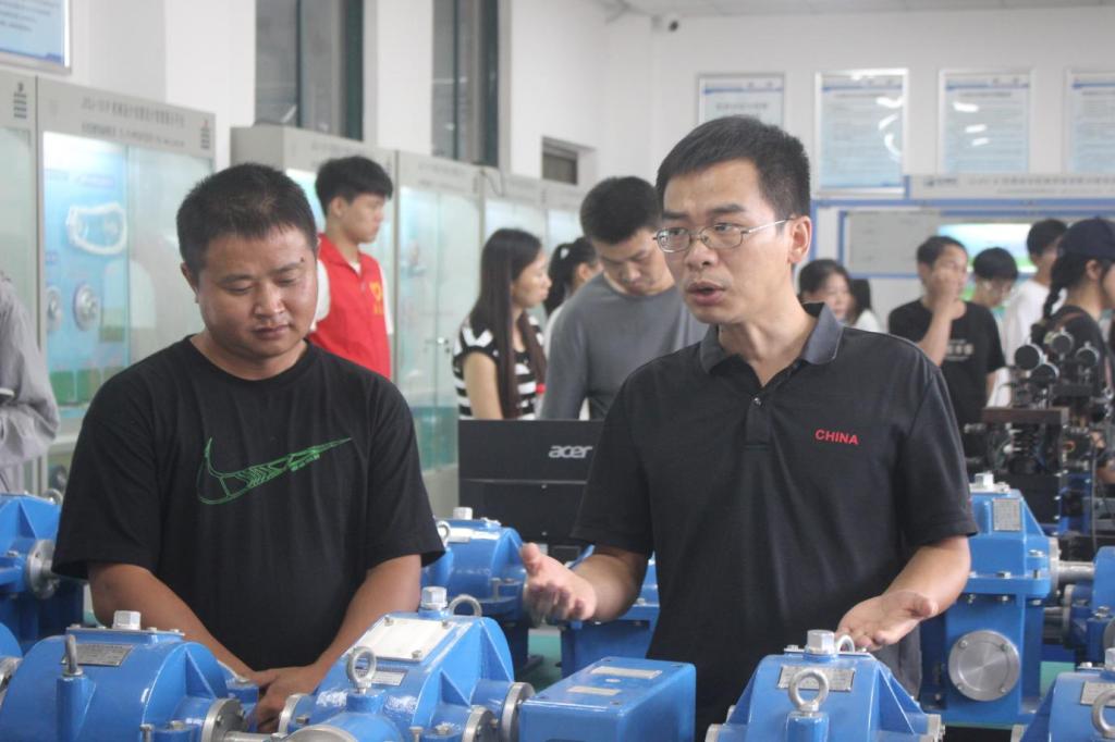 随后,黄能会还带领家长们走进互换性与工程材料实验室、液压实训室、机械原理实训室、PLC实训室、机械设计实训室、电工电子实验室、工业机器人实验室。他结合每间实训室的实际功能、所承担的学科竞赛方向、技能培养类型等详细地进行了讲解,并就各实验实训室的核心器械,进行了现场实操,直观讲解实训教学与技能培养的关联。