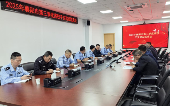 (后勤服务部 徐晴)9月19日下午,襄阳市公安局治安管理支队组织召开2025年第三季度“平安校园”建设联席会议。校长杨海浪、襄阳市公安局治安管理支队保安监管大队大队长范怀军、在襄5所高校分管安全工作负责人及驻校民警参会,会议由襄城区公安分局治安大队主持。