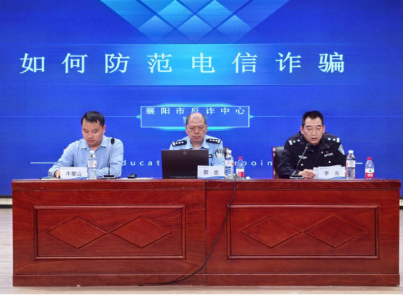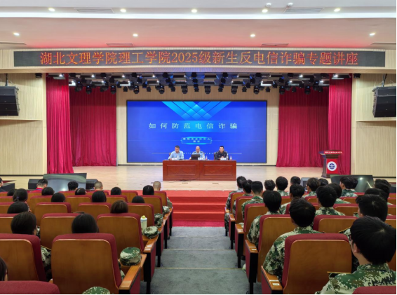 (后勤服务部 徐晴)为切实增强新生防范电信网络诈骗的意识和能力,有效遏制诈骗案件在校园内的发生,9月25日下午,我校成功举办2025级新生反电信诈骗专题讲座。2025级全体新生共同聆听了这场生动而深刻的“大学安全第一课”。襄阳市公安局反电信网络诈骗专家窦哲、尹集派出所驻校民警李东等同志出席活动。讲座由学校后勤服务部部长牛攀山主持,