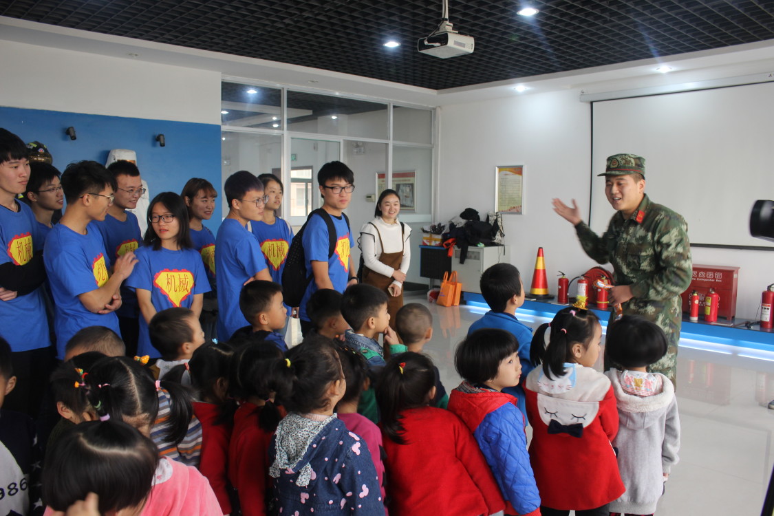在二中队指导员的引导下,大朋友拉着小朋友首先来到消防用品展示厅参观,并由在校大学生汤静秋给小朋友们介绍了各种消防衣的材料与用途。随后消防战士孟德生从专业的角度为大家普及了遇到火灾、地震等一系列自然灾害时的逃生与自救方法,手把手教大家使用相关消防器材。消防官兵还分享了他们最近一次火灾救援的经历,提醒在校大学生们冬天来了要注意用电安全,不使用大功率电器,学会基本的逃生、自救方法。