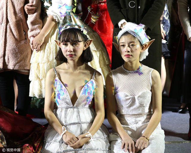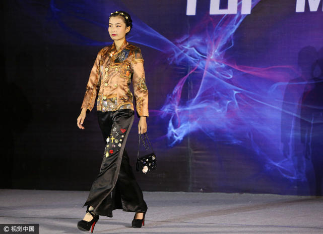 2017年11月22日,湖北省襄阳市,大学生模特展示湖北文理学院理工学院学生设计的服装作品。图片来源:杨东/视觉中国