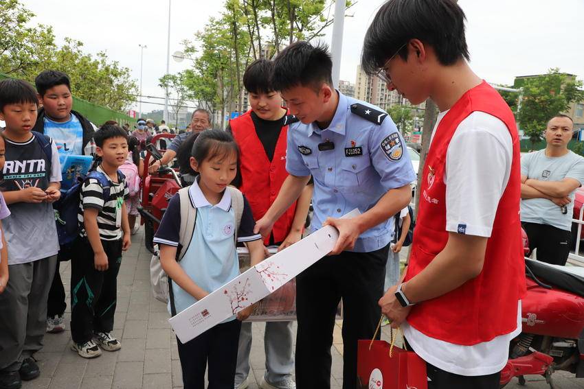 湖北日报客户端讯(通讯员杨梓源、罗泽宇)5月30日下午,襄城公安分局青年志愿者张雪洋携手湖北文理学院理工学院电子科学与信息工程学院的志愿者们,一起精心准备了六一礼物,带着妹妹喜月,早早来到校门口等待着姐姐萱萱放学。刚和同学挥手告别的萱萱,老远看见雪洋叔叔,立马飞奔而来,迫不及待地拉着雪洋叔叔的手分享着今天的喜闻乐见。
