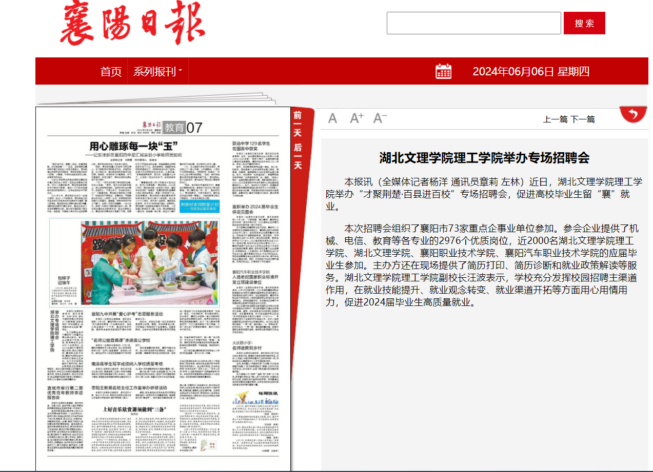 本报讯(全媒体记者杨洋 通讯员章莉 左林)近日,湖北文理学院理工学院举办“才聚荆楚·百县进百校”专场招聘会,促进高校毕业生留“襄”就业。