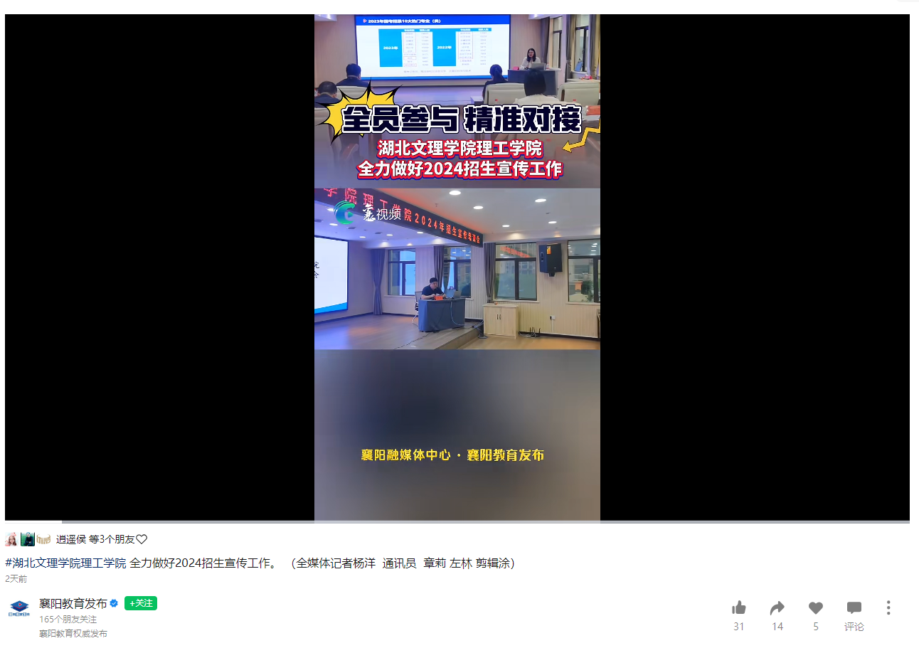 湖北文理学院理工学院全力做好2024招生宣传工作。(全媒体记者杨洋 通讯员 章莉 左林)