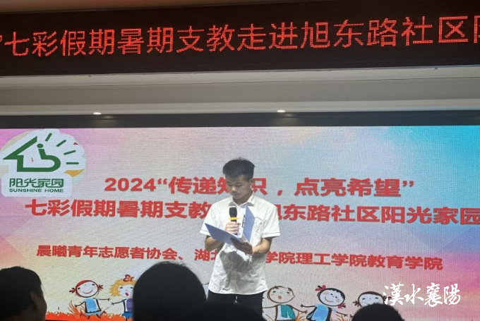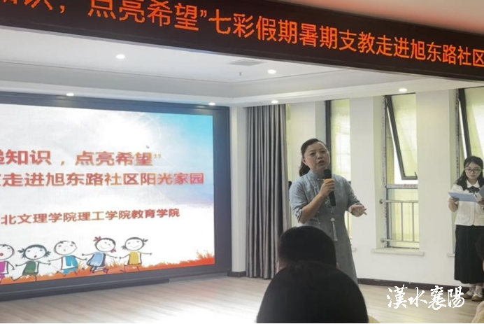 6月20号上午9点,来自湖北文理学院理工学院教育学院的师生,以及晨曦青年志愿协会的成员们,来到樊城旭东路社区阳光家园,开展以“传递知识,点亮希望”为主题的支教活动。