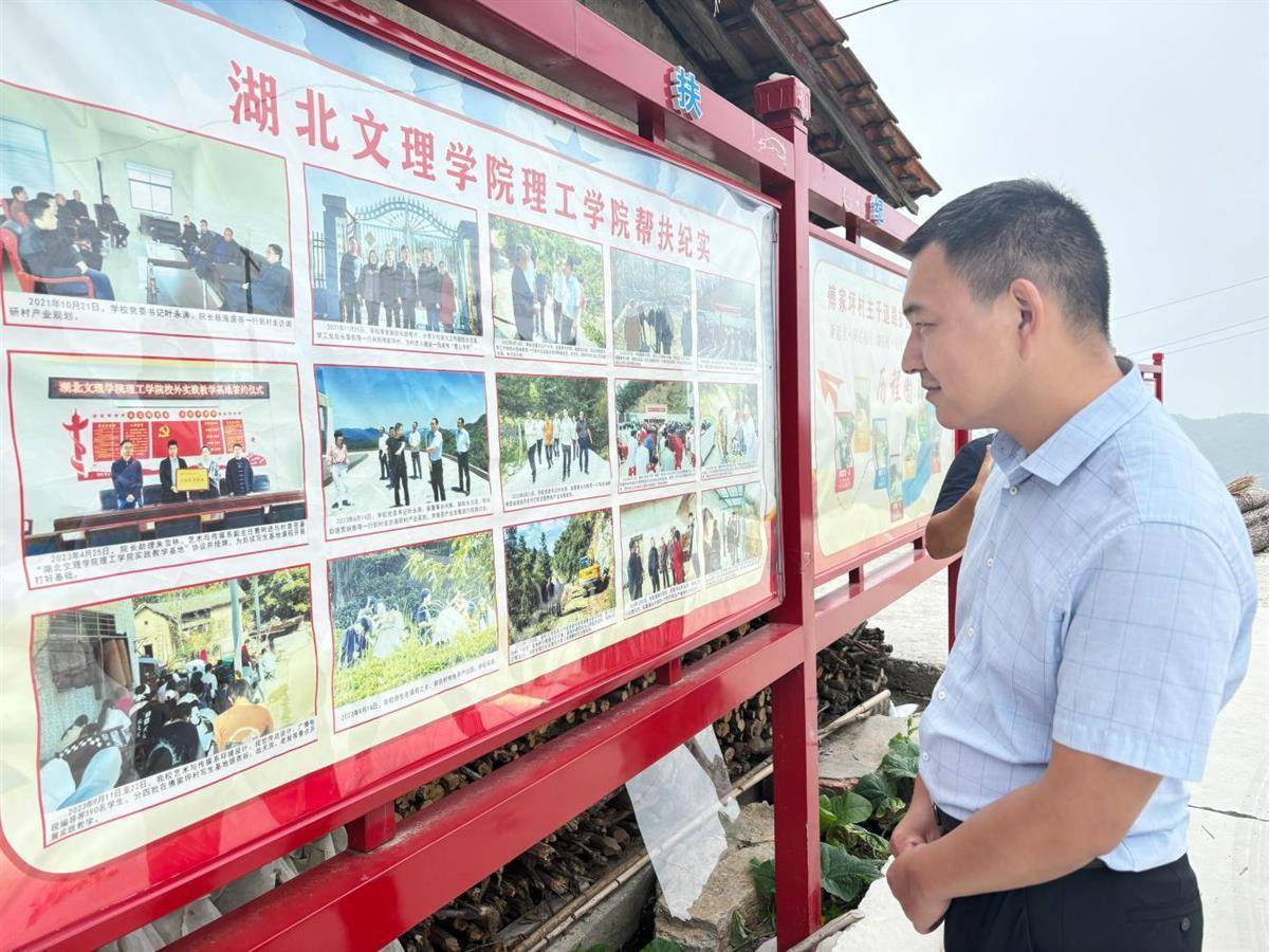 赵乔一行与村两委进行座谈,详细了解学校驻村工作队在产业兴旺、乡风文明、治理有效、生活富裕等方面工作的开展情况,并进行了深入交流;随后,实地调研了村安置点及艺术与传媒学院写生实践基地,在参观《湖北文理学院理工学院帮扶纪实》的同时,听取了驻村第一书记秦晓磊关于驻村工作的工作汇报及下一步工作计划。