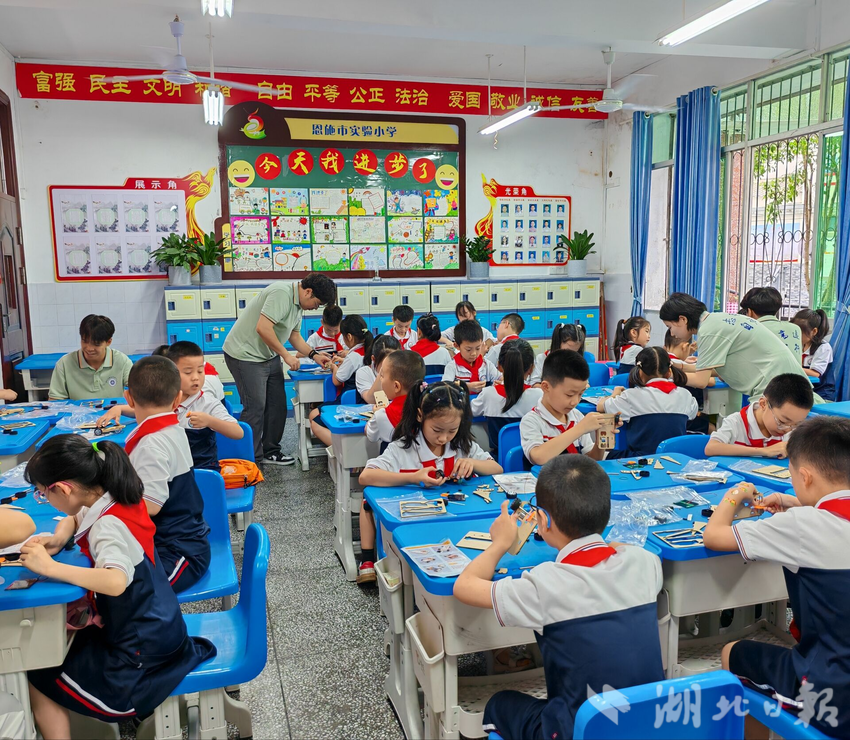湖北日报客户端讯(通讯员李春芳、孙忠国) 7月6日,湖北文理学院理工学院机械与汽车工程学院“匠心青春”暑期社会实践团队到恩施市实验小学,与该校203班同学们开展“感受创新魅力 启迪科技梦想”主题科技实践活动,共同探索科技奥秘。