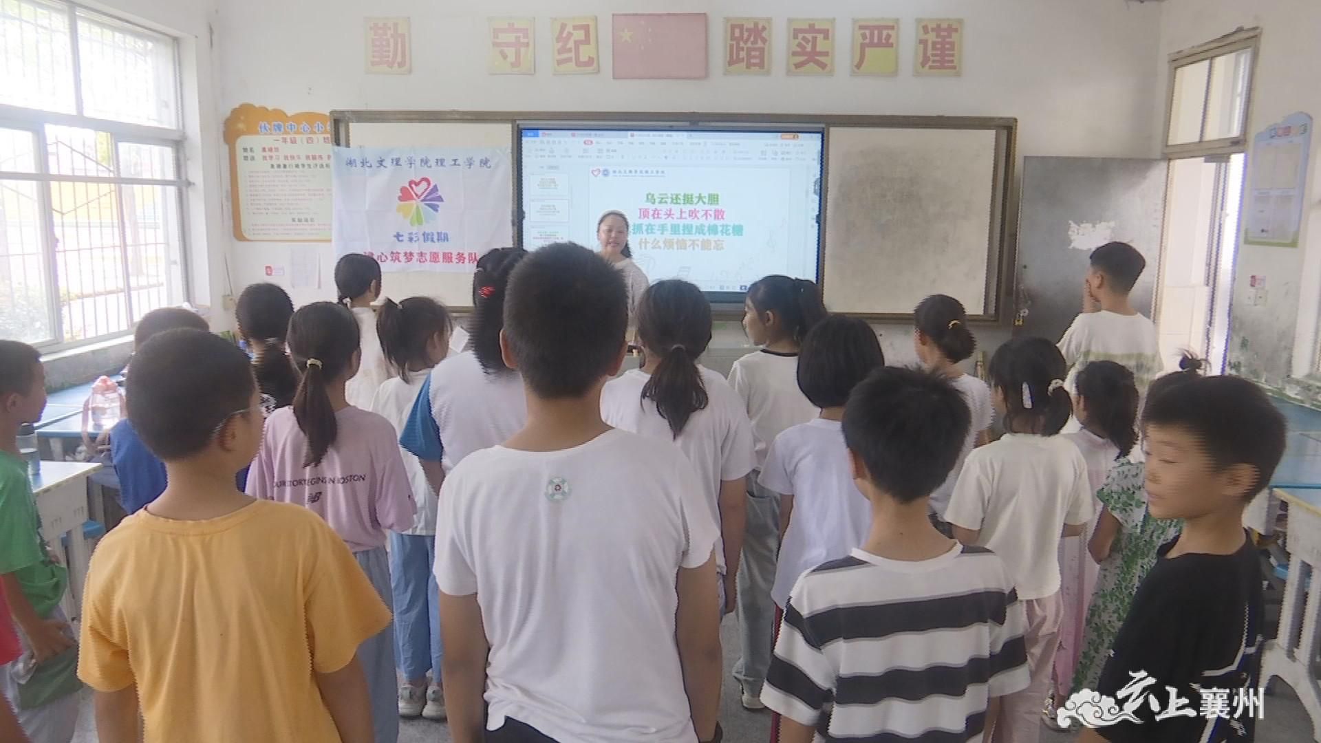 湖北日报客户端讯(通讯员曹浩、陈芳、张小倩)近日,襄州区伙牌镇妇联、团委共同对接湖北文理学院理工学院建心筑梦志愿服务队和华中科技大学软件学院微梦志愿服务队的大学生,在伙牌镇中心小学开设为期半个月的公益课堂,为孩子们开展课业辅导、兴趣培养、安全教育等多项志愿服务,不仅让孩子们享受丰富多彩的暑期生活,还解决了暑期孩子“看护难”的问题。