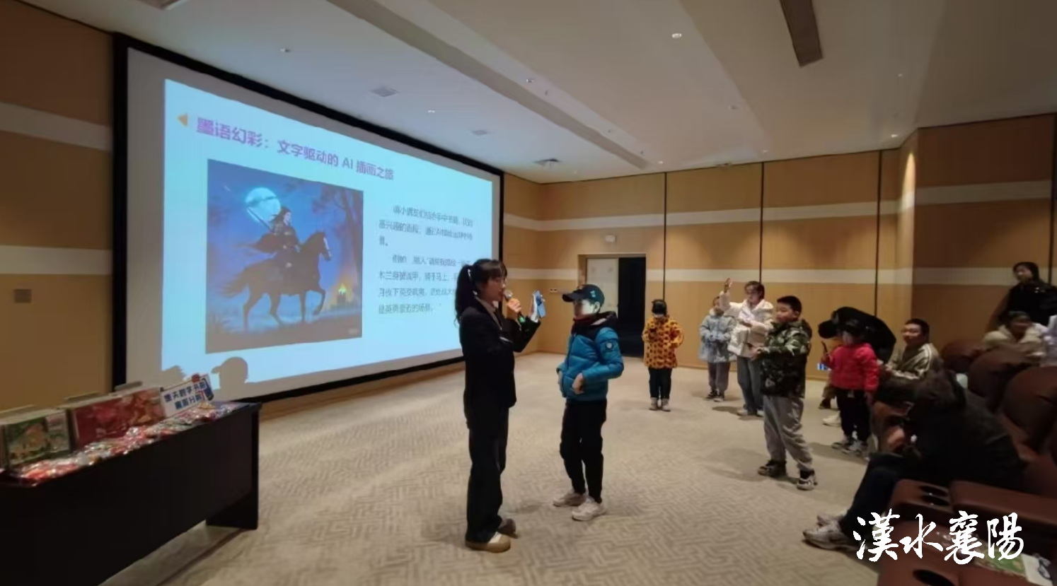 在数字化时代的浪潮中,人工智能(AI)正以前所未有的速度改变着世界。为了激发少年儿童对人工智能的兴趣,培养他们的创新思维和阅读能力,12月15日,楚天数字书院襄阳分院联合湖北文理学院理工学院电信学院在市图书馆影音室举办了一场“探索AI世界,启迪智慧未来”主题活动。此次活动通过融合AI技术与传统阅读,为少年儿童打造了一个寓教于乐、充满想象力的阅读空间。