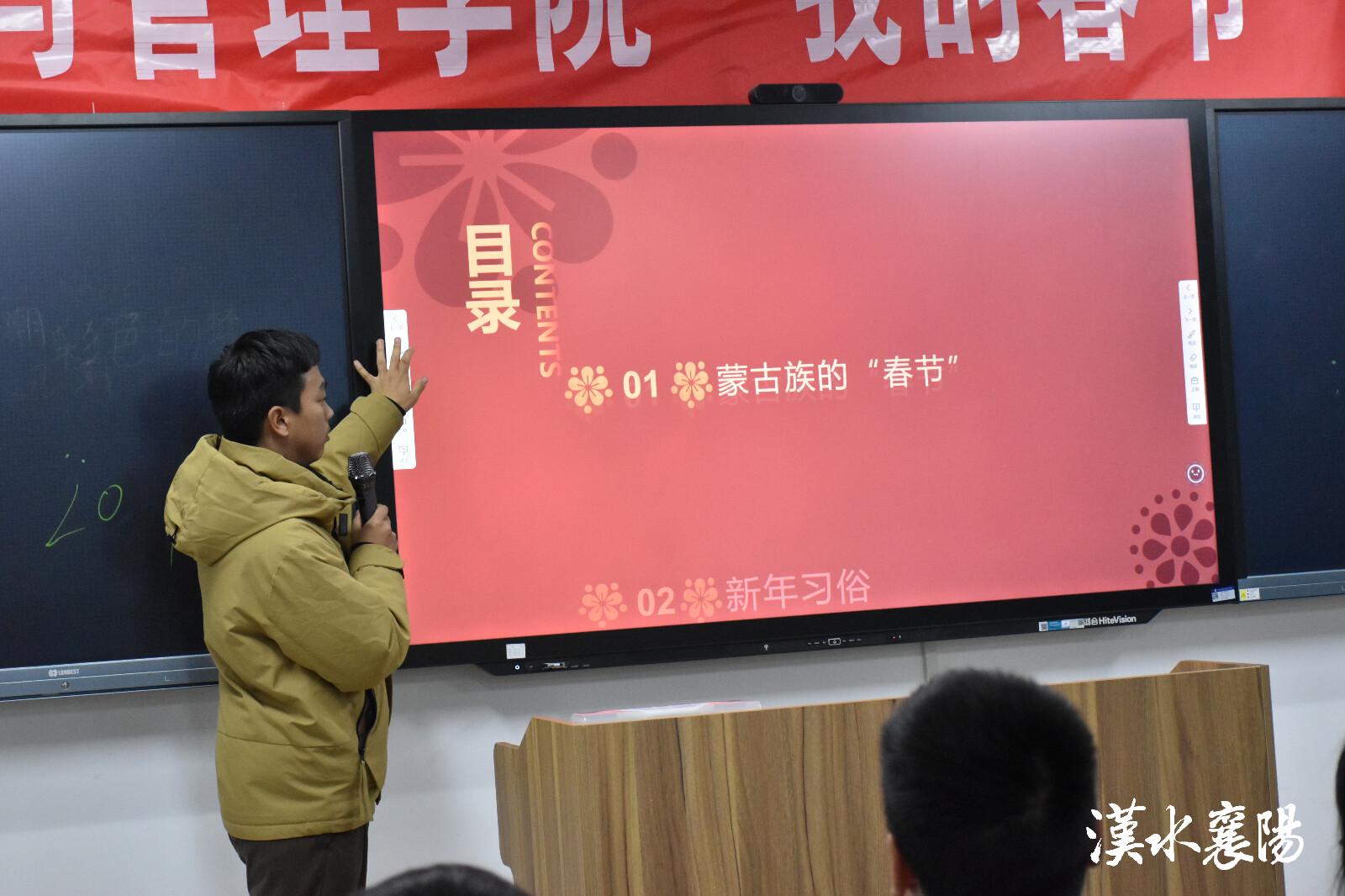 2月20日,湖北文理学院理工学院经济与管理学院举办“我的春节”活动展示,增强各民族同胞的文化自信与民族自豪感。