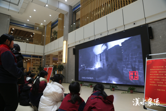 为进一步加强同学们对历史的感悟,展览现场组织同学们一同观看《红色档案·襄樊战役》纪录片,通过声、光、电等手段再现了当时的历史场景,展示了当年革命先烈们为了民族独立、人民解放,抛头颅洒热血,勇往直前、无谓牺牲的精神。同学们边观看边感受,仿佛置身其境,激发对革命英烈的崇敬之情。