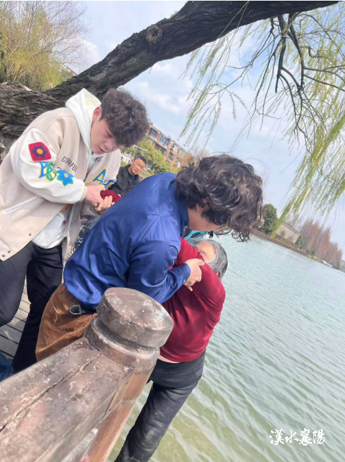 丁文乐表示,大家将老人救上岸后也没闲着,几名同学一直守在老人身边照顾老人、询问情况,拨打120和110求助。