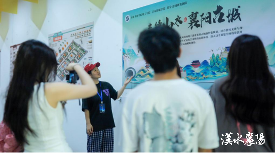 在展览现场,福利院儿童创作的充满童趣的画作与“穆夏艺术展”原作共同展出。志愿者们担任“艺术讲解员”,用温暖的语言向游客解读福利院孩子们的创作故事。细腻的导览打动了在场游客,不少人留下鼓励寄语。此外,理工学院学生创作的《千里江山图》全息影像展也在活动现场展出,艺传学院志愿者们通过专业的讲解,生动再现了襄阳古城的历史风貌,引得游客驻足拍照。