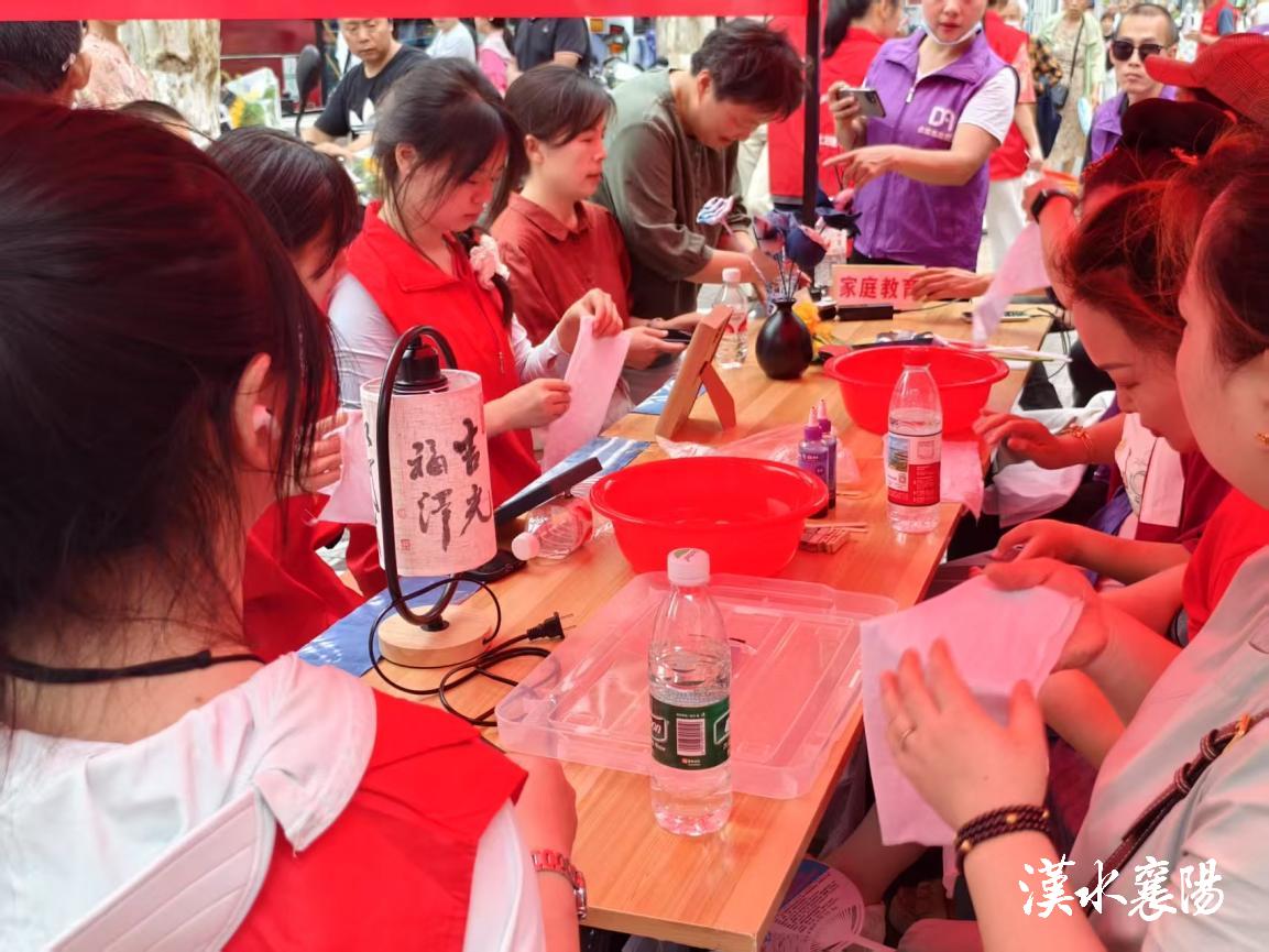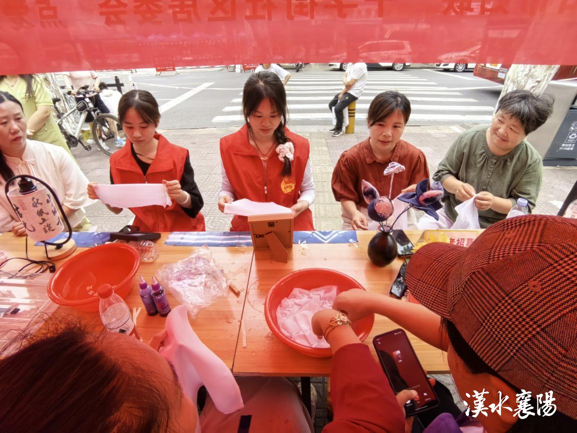 在为考生提供服务的同时,志愿者们也时刻关注着考场外家长们的需求。烈日下,志愿者们穿梭在等待的人群中,为家长们递上一瓶瓶清凉的矿泉水,并引导他们到阴凉的休息区休息。考虑到家长们长时间等待可能会产生焦虑情绪,协会精心策划了扎染制作体验活动。志愿者们化身 “手工老师”,向家长们详细讲解扎染的历史文化、制作技巧和步骤。从布料的折叠、捆扎,到染料的调配、浸染,每一个环节都耐心指导。家长们围坐在一起,专注地制作着扎染作品,现场气氛轻松愉悦。