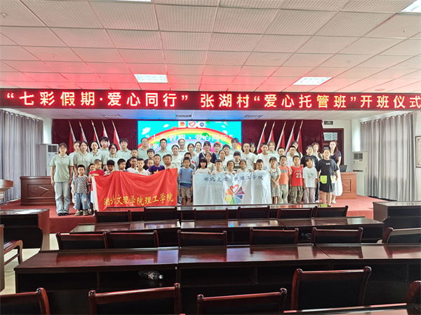 为切实缓解乡村儿童暑期“看护难”问题,丰富儿童假期生活,湖北文理学院理工学院联合襄阳市牛首镇张湖村精心打造了“七彩假期·爱心同行”爱心托管班。7月2日上午,托管班开班仪式在张湖村委会举行,牛首镇人民政府、张湖村村委会、枫桥幼儿园、“千百束光”志愿服务团队及学生代表70余人共同参与。