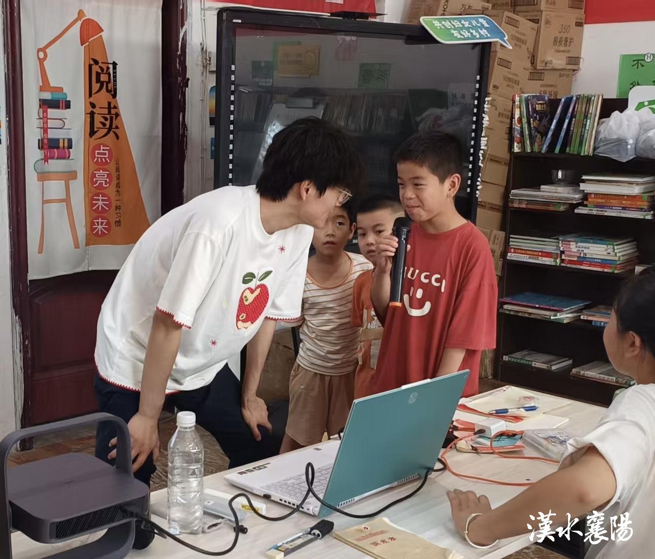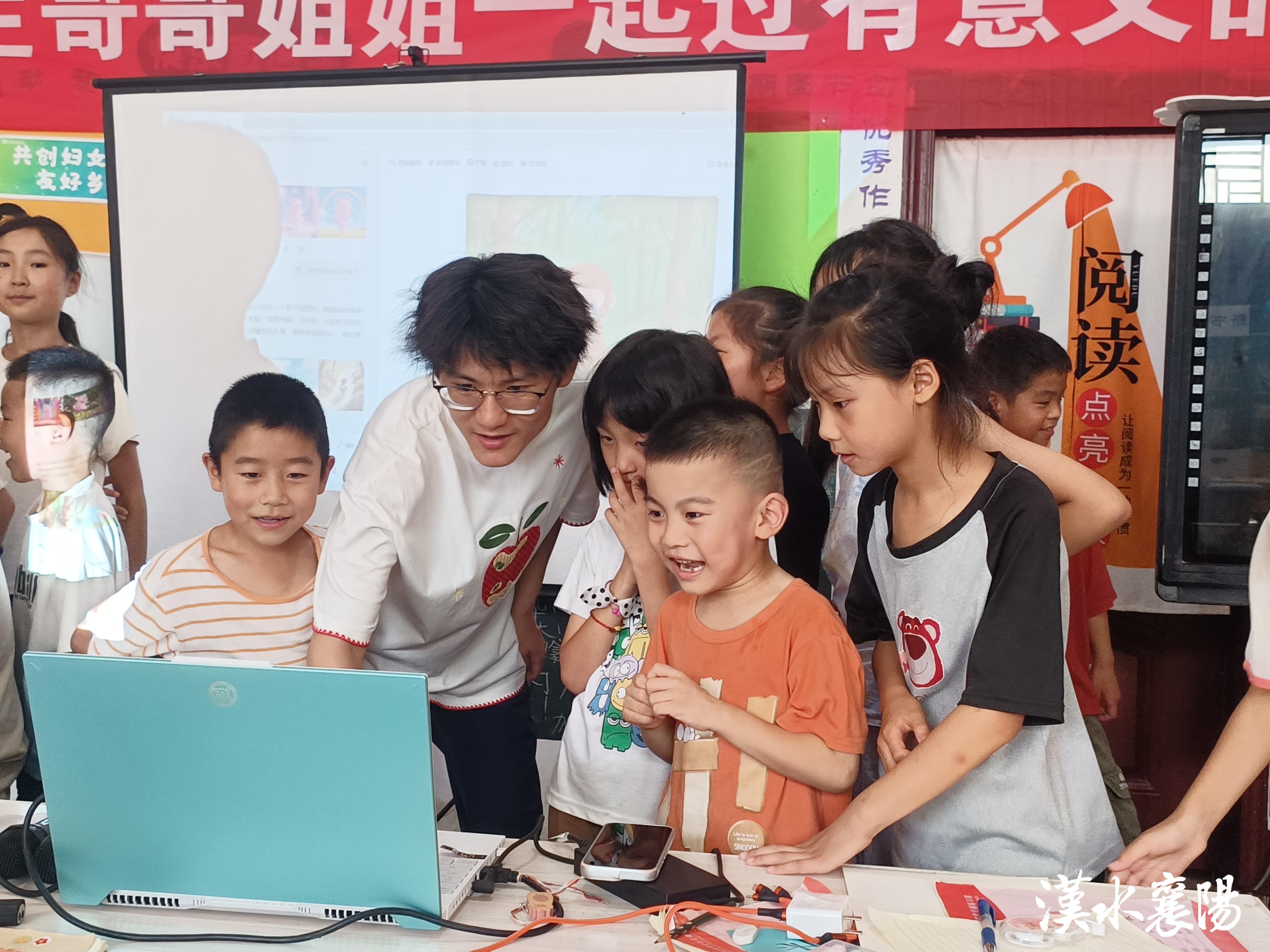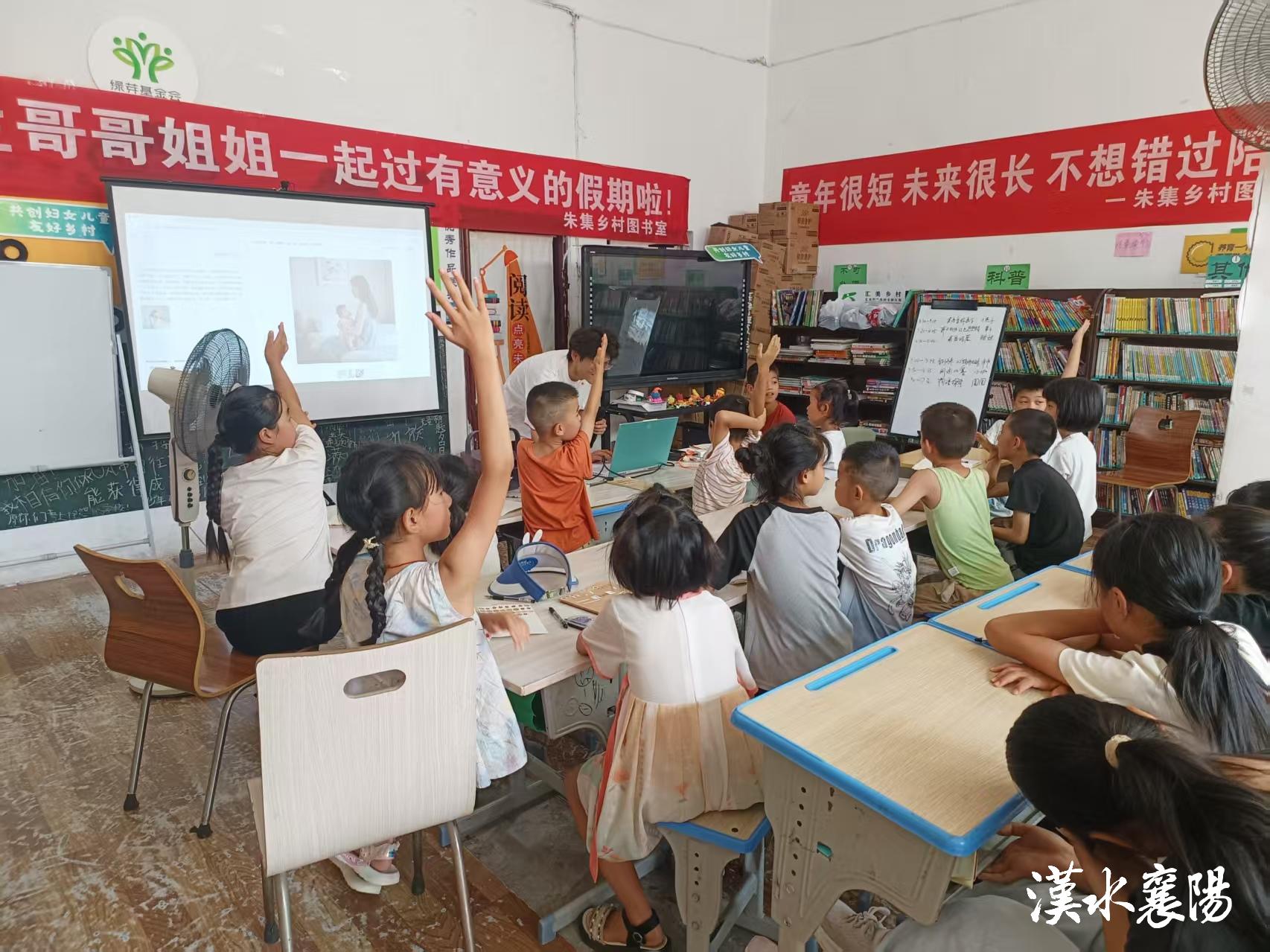 7月7日,朱集乡村图书室变身科技乐园,湖北文理学院理工学院筑梦朱集服务队志愿者为孩子们带来一场趣味十足的人工智能科普活动。